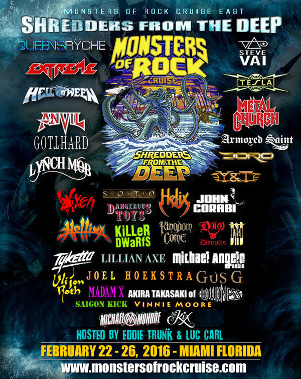The Monsters Of Rock Cruise: Shredders From The Deep will transport fans back to the era when Metal wasn’t just a music genre, it was a way of life. The final artist lineup for the 2016 Shredders From The Deep cruise include headliners Tesla, Steve Vai, Extreme, Sebastian Bach, Queensryche, Helloween and Y&T.