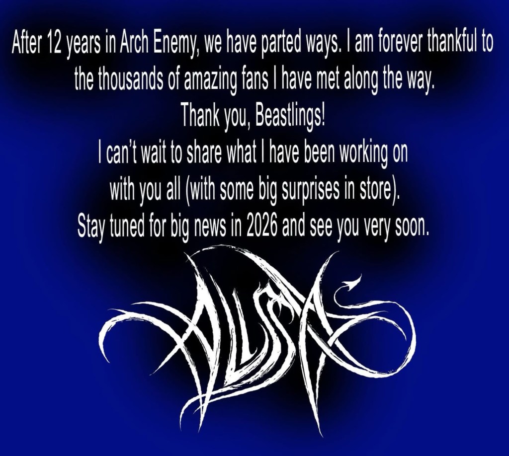 “After 12 years in Arch Enemy, we have parted ways. I am forever thankful to the thousands of amazing fans I have met along the way. Thank you, Beastlings! I can’t wait to share what I have been working on with you all (with some big surprises in store). Stay tuned for big news in 2026 and see you very soon.”