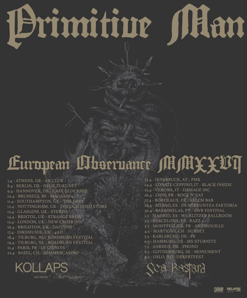 PRIMITIVE MAN European Observance Tour MMXXVI | Dates, Countries, Cities & Venues Listed