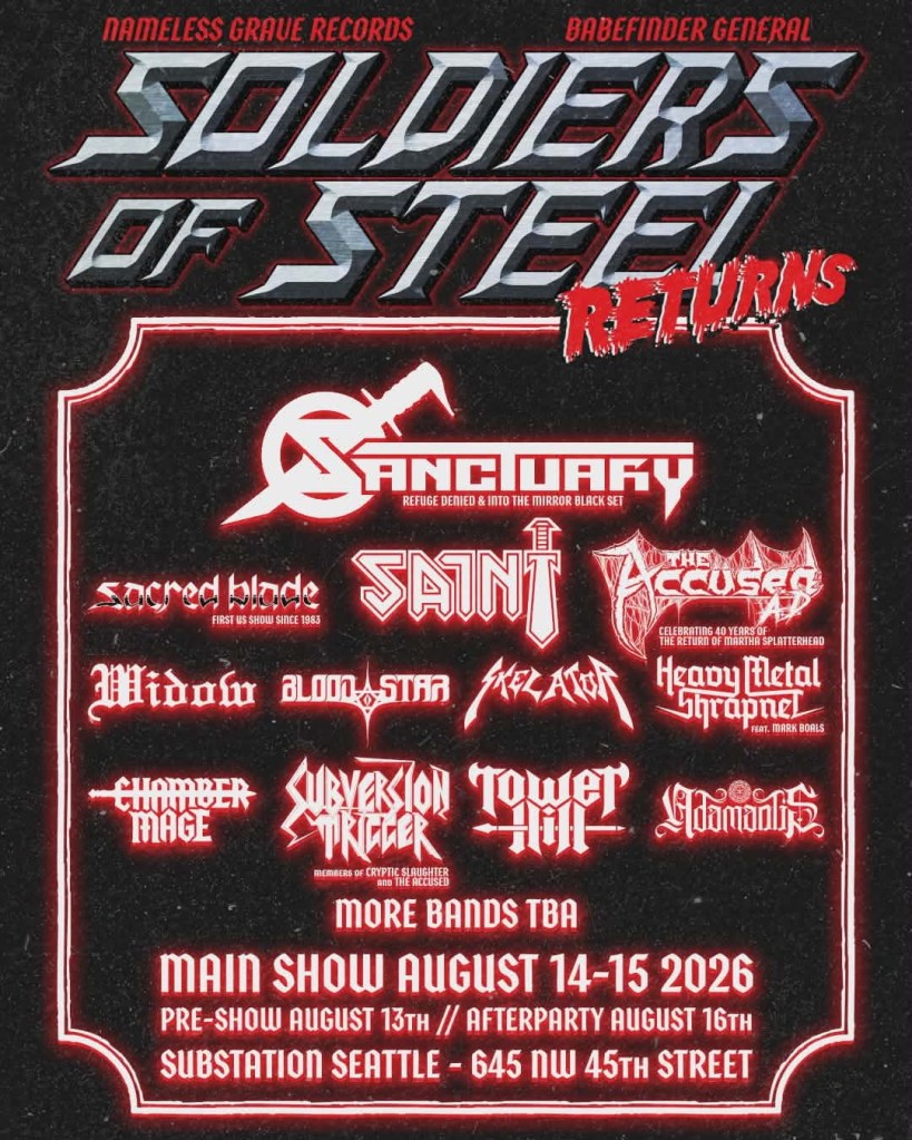 The siege of Seattle intensifies as the Soldiers of Steel Festival reveals the second wave of artists set to storm the stage at Substation from August 13th through August 16th, 2026. This latest announcement further solidifies the festival’s mission to bring the finest in traditional, power, and thrash metal to the Pacific Northwest.