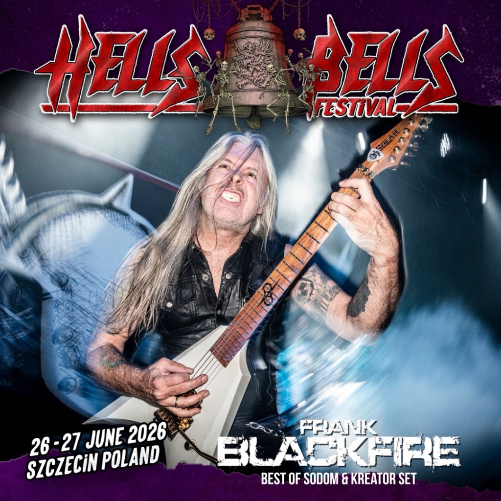 Szczecin, Poland; 26 February 2026: Hells Bells Festival has unveiled thrash metal royalty Frank Blackfire as the spearhead of its latest line-up announcement. The legendary guitarist, renowned for his work with Sodom and Kreator, will arrive in Szczecin with a set specifically curated from the cult thrash metal anthems he helped create. Festival attendees can expect a trip through the history of Teutonic thrash, featuring tracks from iconic albums such as Persecution Mania, Agent Orange and Coma of Souls.