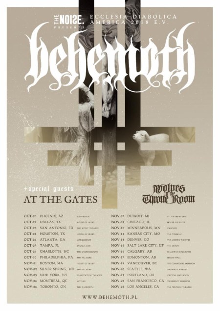 BEHEMOTH, along with Lamb Of God, Anthrax and Testament, all bands who have close ties to and have shared the stage multiple times with Slayer over the years, will accompany the band on leg one, North America, of what will be Slayer’s final world tour. The trek begins May 10th when a twenty-six-date odyssey will have them crisscrossing the country, from San Diego to Toronto, Orlando to Minneapolis. Tickets go on sale to the public Friday, January 26th; log onto www.behemoth.pl for all ticketing info.