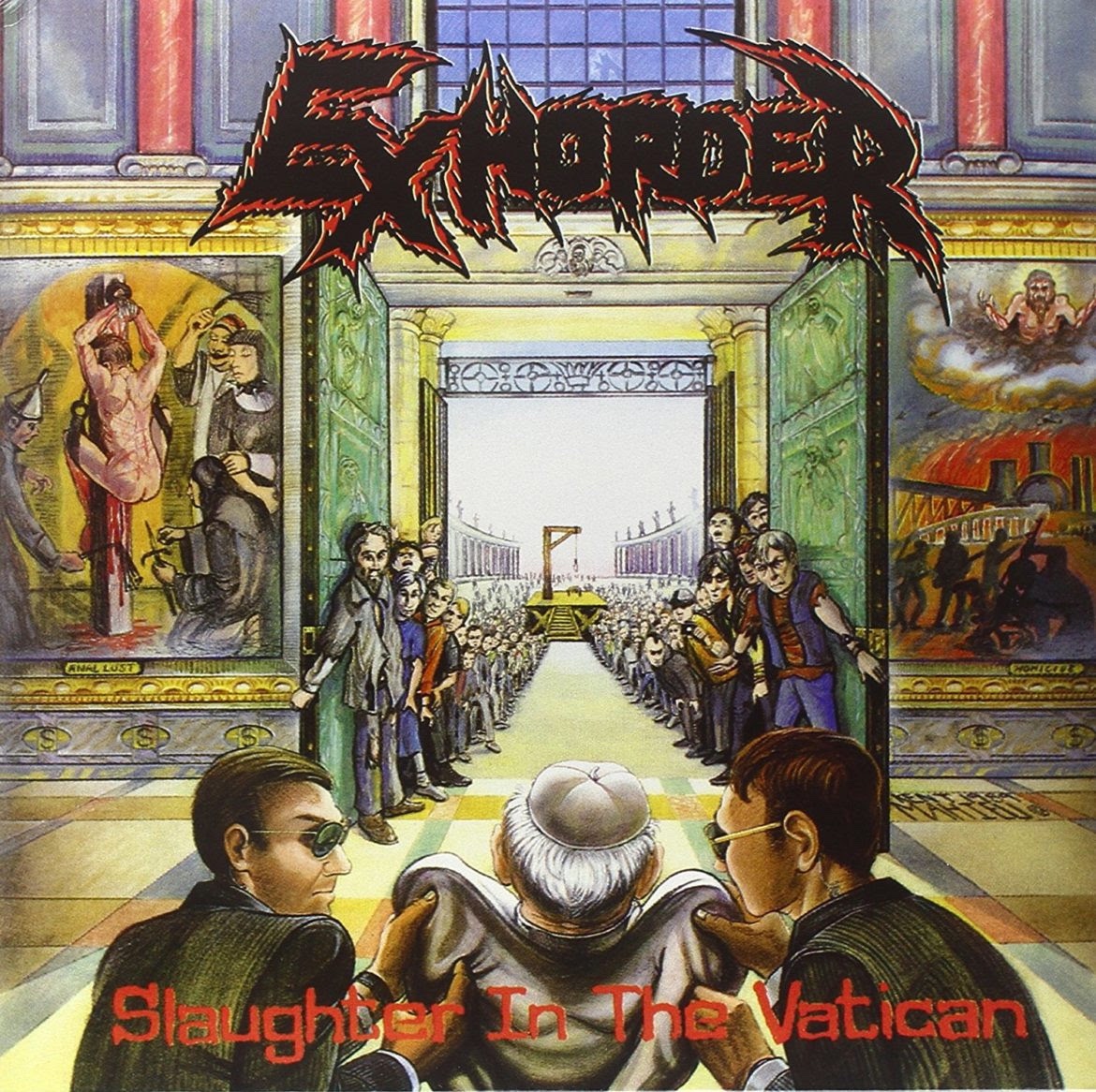 The band soon signed with Mean Machine Records but the label dissolved before the band’s debut could be completed. The contract was subsequently purchased by R/C Records, a subsidiary of Roadracer/Roadrunner Records in the United States. With a small recording budget and repair to previous sessions, Slaughter In The Vatican was completed and released with the assistance of legendary producer Scott Burns in 1990, nearly five years after much of the material was written.