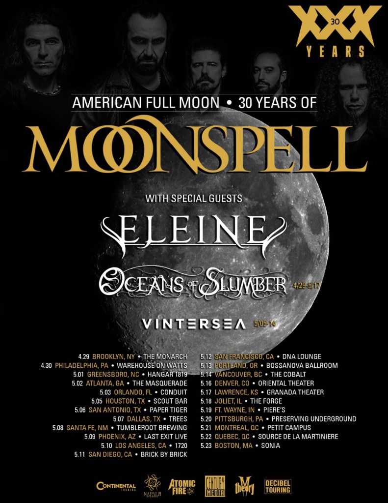 ELEINE is currently setting stages ablaze across North America supporting Moonspell. The tour commenced on April 29th and will wind its way through nearly two dozen cities, coming to a close on May 23rd. See all remaining dates below.