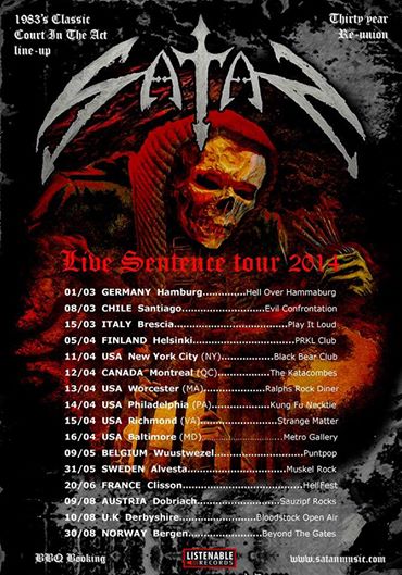 Legendary NWOBHM band SATAN have announced a series of live dates in the U.S. and Europe.